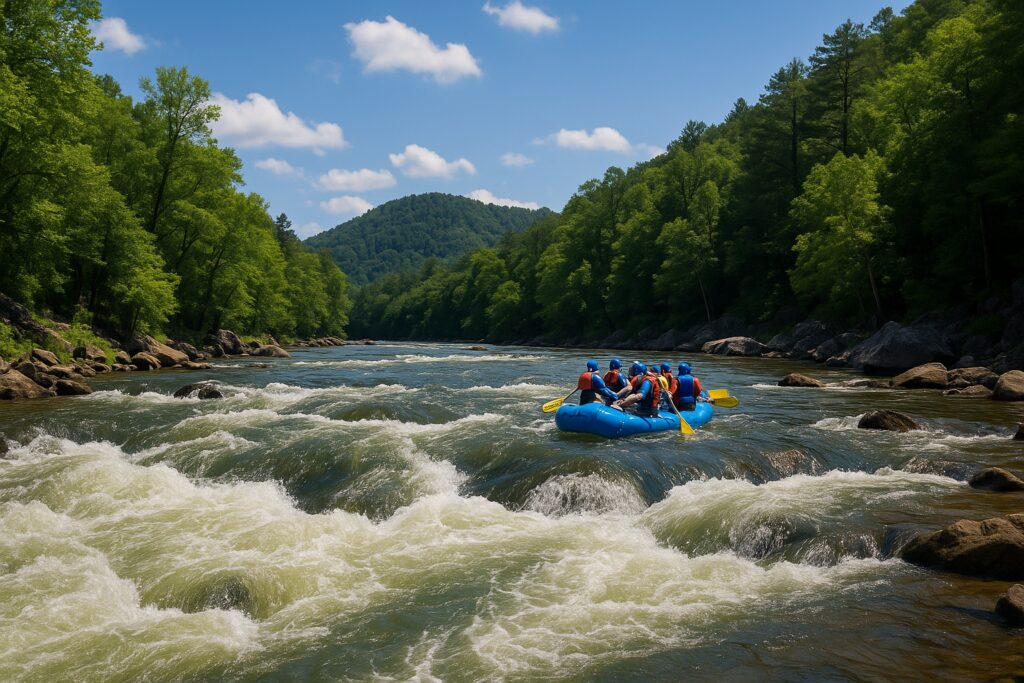The Nantahala River is perfect for your first whitewater adventure. You can paddle your own inflatable kayak or join a guided or unguided rafting trip. Several outfitters nearby make it easy to get started.
